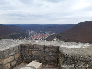 Pääsin myös hiukan päivämatkailemaan, ja nämä päivät olivat kuukauden parhaimpia. Yhden ystävän kanssa matkustimme ensin Hohenzollernin linnalle, ja seuraavalla viikolla spontaanisti Bad Urachiin. Burg Hohenzollern ei tosin ollut auki, joten vaeltelimme lähiteitä pitkin ja nautimme maisemista - näimme ehkä jopa Alpit horisontissa! Bad Urachissa nautimme aluksi "paikalliskulttuurista" syömällä - kävimme varmaan ainoassa aukiolevassa kahvilassa (lauantaina!) ostamassa jäätelöannokset ja sitten kiinalaisessa pikaruokapaikassa jossa olimme varmaan ensimmäiset asiakkaat koko päivänä... Kaupunki oli aivan autio, tosin se vaikutti muutenkin olevan hyvin pikkuruinen ja eleetön. Loppupäivästä kyllä kiipesimme vesiputoukselle ja kukkulalla sijaitsevalle linnanraunioille, jotka olivat molemmat aivan henkeäsalpaavat. Vesiputouksella luulin hetken olevani Aasiassa, niin trooppisen eksoottista siellä oli, ja linnanraunioista tuli mieleen Viisikkojen Kirrin-saaren linna. En voinut uskoa että siellä sai kiipeillä niin vapaasti! Loppumatkalla tosin myöhästyimme junasta ja odotimme tunnin sateessa seuraavaa autiolla juna-asemalla. :D Bad Urachiin ja sen linnanraunioille tahdon kuitenkin joka tapauksessa päästä uudelleen.